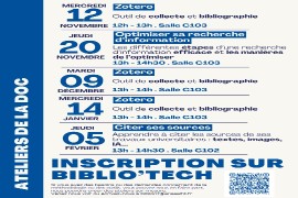 Besoin d'aide pour vos recherches bibliographiques, pour une base de données, pour acquérir une méthode de recherche, etc. ? La bibliothèque de l'ENSEEIHT et de l'AgroToulouse organisent des ateliers...